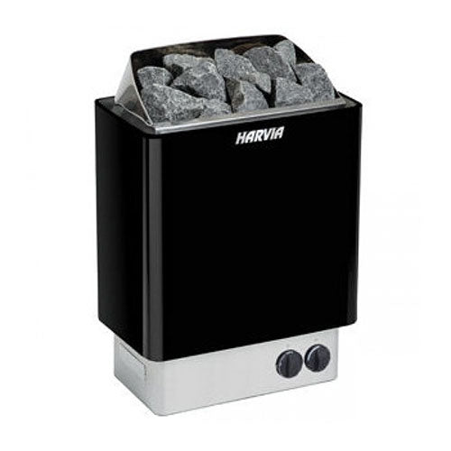 Harvia KIP tai elektrinė pirties krosnelė, kuri yra kabinama ant sienos. Krosnelės išorės apdaila dažyta juodai.